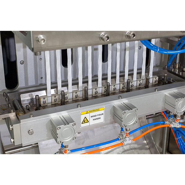 6、多列干燥劑包裝機智能完成多列產品包裝,可以在包裝過程中自動完成供膜、分切、成型、計量、制袋、充填、封口、打印生產日期、切斷、計數、切易撕口等全部工作。