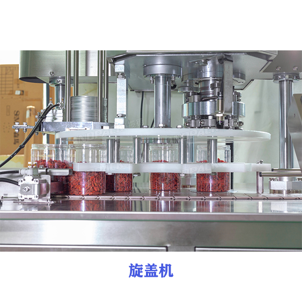 此自動生產線用于罐裝的食品,對罐子進行封罐旋蓋貼標,能夠有效減少與空氣接觸,達到延長保質期,如枸杞、堅果、葡萄干、爆米花、開心果等食品。該線由自動理瓶-封罐-上蓋-旋蓋-貼標等工序組成,該線的每臺設備設計合理,結構緊湊,占地面積小,工作效率高,運行穩定可靠,操作簡單方便。前端可與顆粒灌裝機連線使用,后端可配開箱機,裝箱機,封箱機,打包機連線使用,可形成一條全自動化生產線,節省人工,自動化程度高。