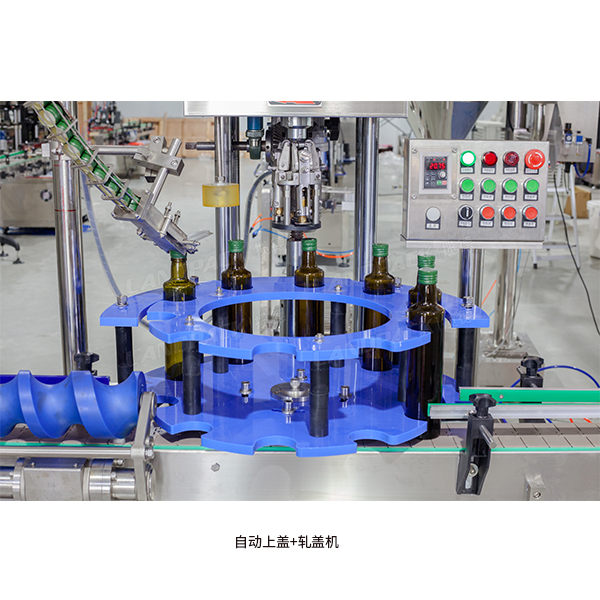 該自動(dòng)灌裝生產(chǎn)線主要用于流動(dòng)性好的液體,其黏度范圍在1-100cp內(nèi),可用于食品、醫(yī)藥等行業(yè),如食用油,口服液,紅酒等等。該生產(chǎn)線使用的封口機(jī)為扎蓋機(jī),瓶子與蓋子一對(duì)一現(xiàn)配螺紋,使封口效果更好,密封性更強(qiáng);人工套膠帽后配收縮機(jī),使膠帽貼實(shí)光滑,美觀無(wú)皺;最后進(jìn)行貼標(biāo)。該機(jī)具有適用廣泛、自動(dòng)化程度高、灌裝精度高、生產(chǎn)效率高、操作簡(jiǎn)單、使用壽命長(zhǎng)等特點(diǎn)。