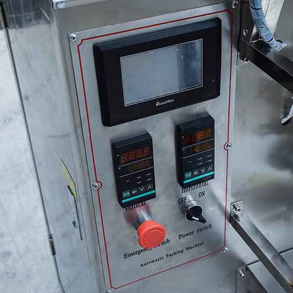 5、自動卷膜制袋裝置:可自動完成卷膜制袋,物料計量填充,包裝袋封口、打印日期,另外可以選配功能連包、歐洲掛鉤孔、手拎孔、折角、充氮氣等。