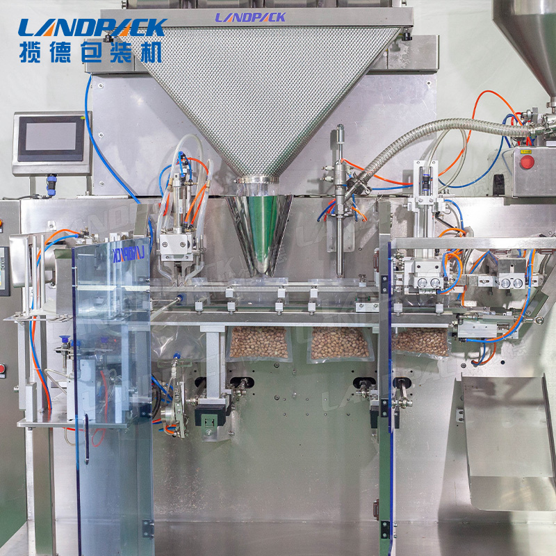 水平給袋式包裝機可以快速更換包裝袋的規格,袋寬大小一鍵自動調節。單軸傳動加內凸輪設計,包裝速度快、運行更加穩定、維修更簡單、減少次品率。模塊化加熱、溫控更精準、加熱故障可報警提示。