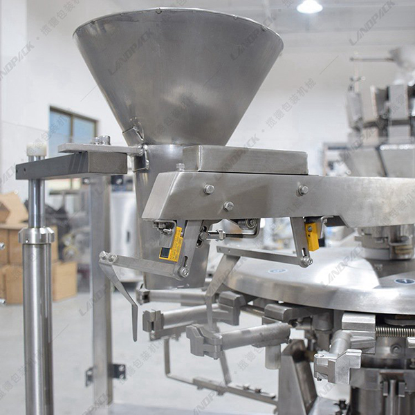 5、下料環(huán)節(jié):設(shè)備根據(jù)袋型尺寸,配套合適的不銹鋼下料斗,下料斗更換方便;