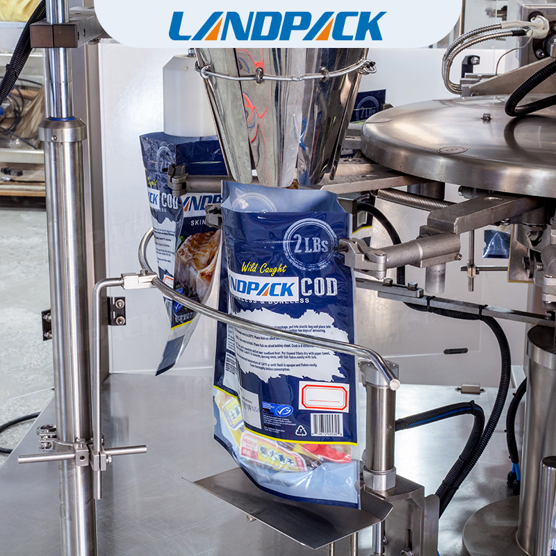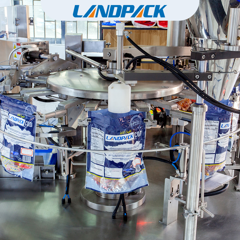 給袋式包裝機采用預制好的包裝袋,包裝圖案美觀,封口品質好,趨于完美的包裝工藝,完美的品質保證高速和穩定的生產,保持機器持久穩定運行,防水系統使清洗清潔更方便。包裝全過程無需人工作業,有效的為貴公司提高了生產效率,節約了人工費用及管理費用,大幅降低了成本。