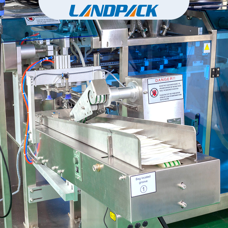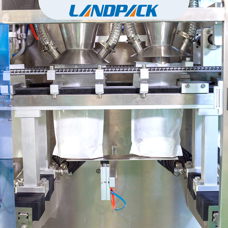 調味品混合包裝機它代替了手工包裝,操作人員只要將做好的一個一個的袋子,一次性將幾百個袋子放在設備的取袋部,設備機械手會自動的取袋、打印日期、開袋、給計量裝置信號計量并落料、封口、輸出。