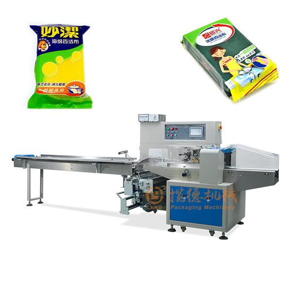 袋裝洗碗布/抹布包裝機器設備適合于百潔布、擦碗塊、清潔布、抹布、透明膠、卷紙、電工膠帶,隔離膠,塑料瓶、鐵板、藥品、日用品、工業零件、紙盒或托盤等各類有規則物體的包裝。