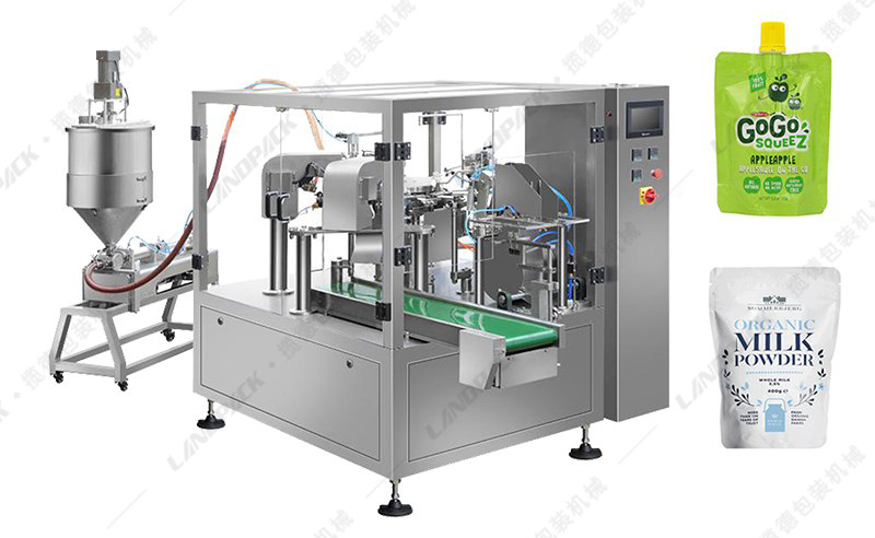 工作流程: 上袋→打印生產(chǎn)日期→開袋→充填1→充填2→空位→熱封→整形及輸出